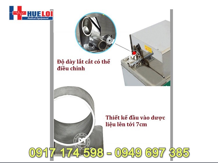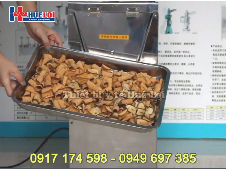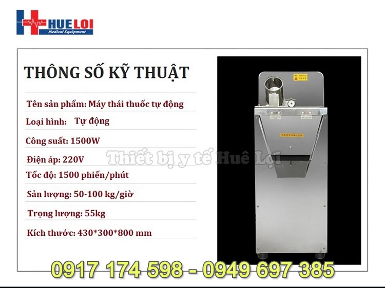 - Máy thái thuốc đông y tự động tốc độ thái 1500 phiến thuốc 1 phút, sản lượng thái được tới 100kg dược liệu 1 giờ, có thể tùy chỉnh được độ dày phiến thuốc, chiếc máy thích hợp sử dụng trong các khoa bào chế thuốc của các bệnh viện hoặc phòng khám Y học cổ truyền.