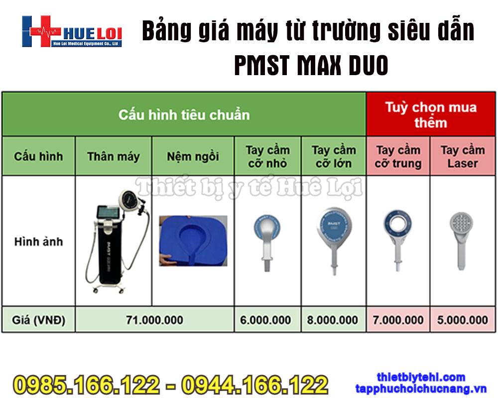 Máy từ trường trị liệu PMST MAX DUO là thiết bị trị liệu từ trường cường độ cao, được thiết kế để hỗ trợ điều trị hiệu quả các vấn đề về đau mãn tính, chấn thương thể thao, rối loạn cơ xương khớp và phục hồi chức năng. Với cường độ từ trường mạnh lên đến 7 Tesla (cho mỗi kênh điều trị), thiết bị cho phép năng lượng từ trường thâm nhập sâu từ 10–15 cm vào cơ thể, tác động trực tiếp đến mô cơ, thần kinh và tế bào – giúp kích thích tái tạo và giảm đau nhanh chóng mà không cần xâm lấn.